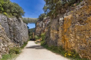 Nace en una cueva y sus 25 metros de altura van dejando terrazas escalonadas que dividen el casco urbano en 2 partes: la Puebla y la Villa.